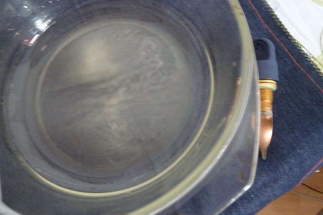 Тапата: тя може да се измие и забърше. Има остатъци от котлен камък по нея. Това също е лесно.
