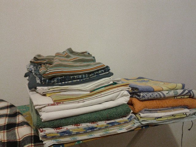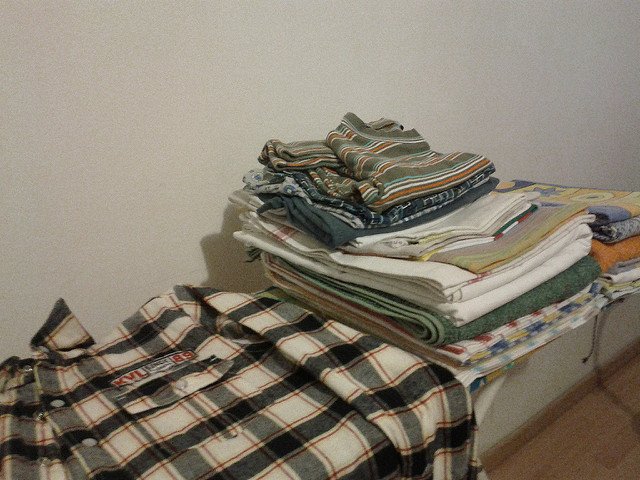 Миналата седмица доста работа видя пералнята и тази чак днес се събра пране. Почти само памук. И не изсъхна напълно. Затова изгладих поизсъхналите неща - кърпи и ошушках шкафовете за да дублирам нещата на простира. Тъй като всичко се пере с центруфуга 1200 об/мин и се прибира негладено, нещата, които извадих от гардероба бяха доволно намачкани. В същото време бяха и сгънати. Като необичаща особено гладенето сгъвам старателно всичко преди да го сложа в коша за пране и веднага щом махна от простира. Още на терасата. Така имах пране намачкано от ценруфугата и със стабилни прегъвки от стоенето сгънато неколко дни.