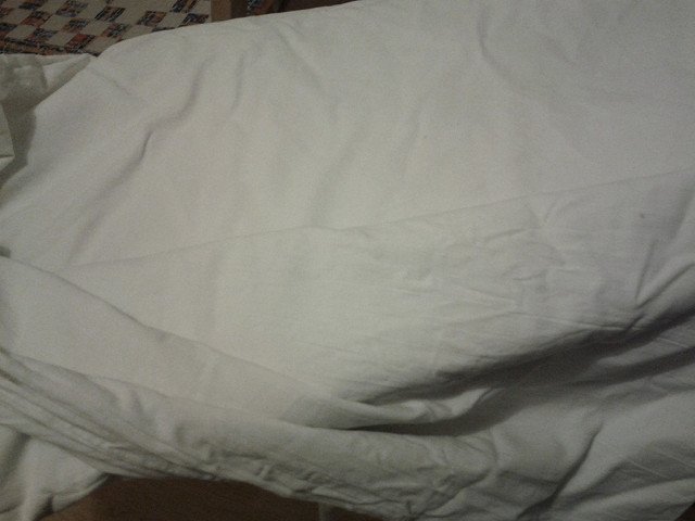 Кърпите ми никога не бяха виждали гладене... освен ако трqбва да ги пакетирам за пътуване и са влажни. Но и това да е ставало веднъж-два пъти. Това е нещо като spa за тях! Не гладя и пликовете за завивки. Тупваме ги както в детсвото ми -  преди и след сушене и сгъвам старателно. В случая имах намачкан плик, и донамачкан, с централна кръгла дупка на лицето и сатенено бие, с повреди от предишни гладения /сатененът буквално се апликира върху памука, ако се мине с температурата за памук/. Е Гладих на зигзаг отгоре - памукът изгладен, сатенът ОК. И за него беше spa. Simple Smile