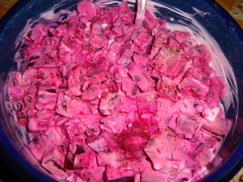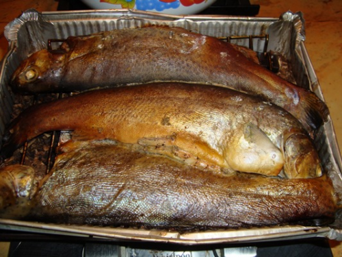 Пушена риба от Никулден и салата от цвекло, яйчна, картофена салати и зеле с риба тон
