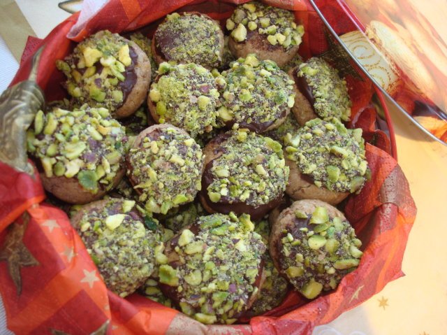 Белинда, аз бих ти предложила да сложиш още малко пудра захар ,да направиш топче и от двете му страни да притиснеш половинки от орехи.