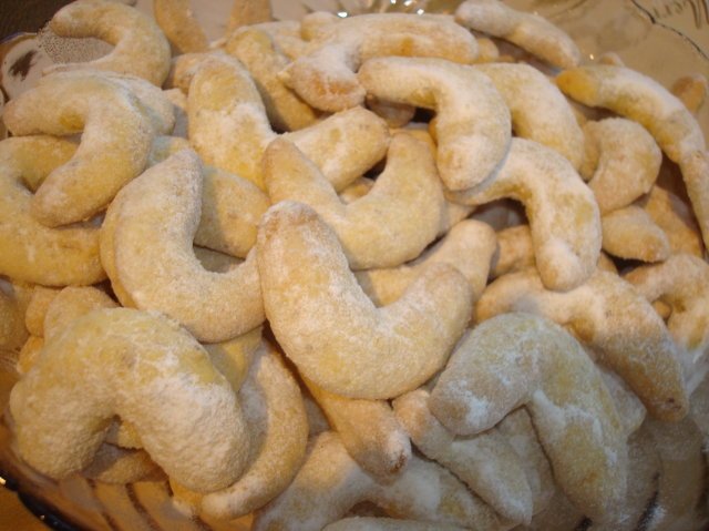 Другото ми произведение са бадемови коледни бисквитки и линцери - тях предполагам може още довечера да слепя със сладко,овалвам в пудра захар и затварям в кутия,нали?