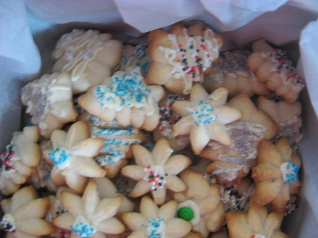 В кутиите има меденките на Джули, линцерите на nudel33, шприц сладки с бял и кафяв шоколад, топчета - ромови и с бърбън, забравени сладки, бонбони Рафаело, tutti ruiti trufelsи Schoko-Nuss Kugeln на nudel 33. Пускам снимки на шприц сладките, станаха много бързо и много вкусни!
