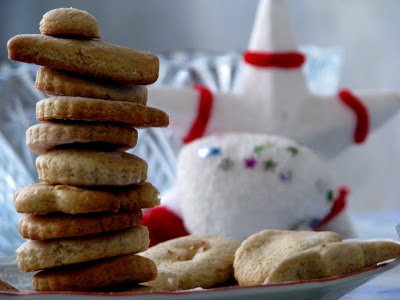Ето и моите курабийки. Не са украсени. Не посмях да сложа суров белтък за украсата, а нямам готов роял айсинг /дали се продава във Фантастико?/ Но станаха много вкусни. Мислех си, че децата няма да харесат мириса на канела, джинджифил, индийско орехче и карамфил, но те - напротив, излапаха по няколко и питаха за още. Моите курабийки правих по рецептата на Танита. Благодаря ти, Танитка!  bouquet