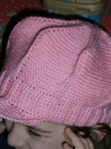 Това е най-новата шапка на малката, изплетох я преди 2 седмици и много си я харесва- нарича я "Сладоледената шапка". Лятото й изплетох още 2 обаче до сега не съм ги снимала защото нямах фотоапарат. Но... Дядо Коледа се погрижи за това и вече ще снимам на момента. Laughing