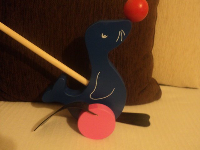 Днес купих на Таня  тоалет за Коледното тържество и дървена буталка-тюленче за Нели.Ей голям кикотене,голямо нещо падна,не вярвах,че толкова много ще се забавлява.