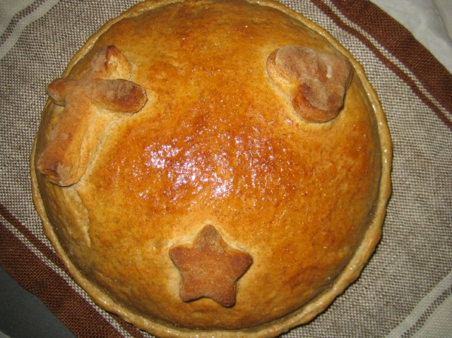 Аз мисля да направя питка с паричка и да я украся с кръстче, звездичка и сърчице (вяра, надежда и любов). Хареса ми идеята на belinda за свещ в средата! С нейно разрешение ще я взаимствам!  Hug