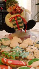 Аз леко след дъжд качулка, но ето и малкото неща, които направих тази Коледа (малко, защото си навехнах ръката доста гадно и не можех да меся). Но пък съм изключително горда и не мога да не похваля 7-годишната си дъщеря, която участва в замесването на различните теста, в изрязването на формичките (там помага и 4-годишния й брат) и най-вече в декорацията. Всъщност 50% от декорацията е нейно дело. Grinning Иначе за протокола, на снимките са: рохлички на Наталина, меденки на Джули, още едни меденки по рецепта на Лулу, линцерови сладки, трюфели tutti frutti, медена къщичка с едно експериментално тесто, както и един коледен сладкиш от френско кулинарно списание. Забравих да снимам едни ромово-ментови меденки по рецепта от същото списание.