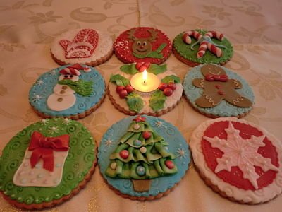 Мами, прекрасна идея за картичките, само, че аз изтървах срока! Cry Иска ми се на всяка една от вас да пратя, нали ви чета отдавна имам чувството че ви познавам от години Blush......надявам се следващият път да успея.  Но вместо да чакате до тогава ще направя едно виртуално пожелание до всички вас четящи и пишещи, февруарски, мартенски и априлски  майчета. Ще ви сложа една снимка вместо картичка на едни мои декорирани меденки, дето много се старах  със тях понеже взеха участваха в един конкурс  „Най-красива Коледна бисквитка” .  За всички вас: