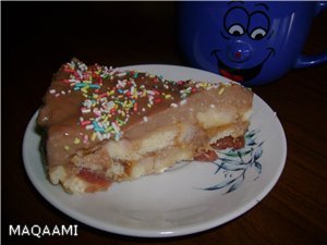 За шоколадов мус с бадемова кора и портокалови корички се използва 500 мл разбита сладка сметана, която се смесва с 250 г разтопена шоколадова кувертюра. Тази смес се разстила върху платката и след това се добавят портокаловите корички. Платката се приготвя от яйце, сок от 1 портокал, бакпулвер, захар, олио, смлени бадеми и брашно, като се пече във форма със снемаем ринг.