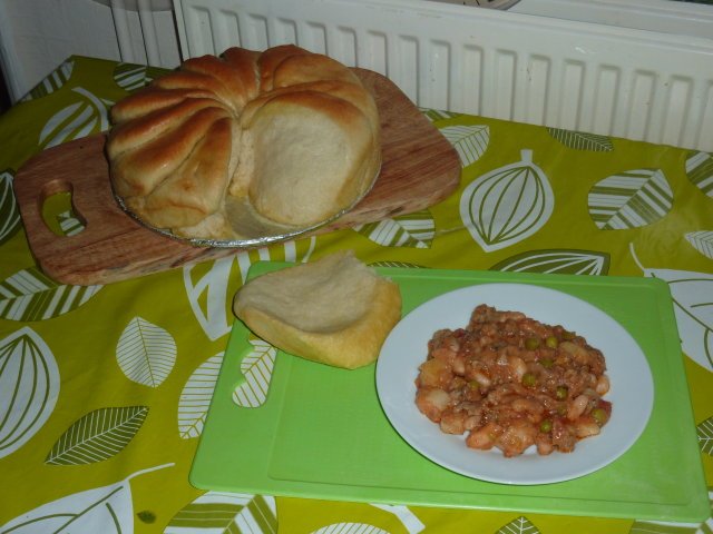 да се разпиша с един прекрасен хлебец - сръбската погачице и една моя измишльотина - яхния от картофи, грах, гъби, боб, чушки и кайма - стана невероятно вкусно   chef