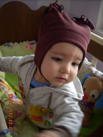 И ние сме в отбора на неизправящите се, неможещите да седнат от легнало положение, непълзящи, и с ръце не пляска, абе нищо кой знае какво не прави, освен да се обръща, когато не трябва и да се удря по мебелите, когато съм обърнала поглед ooooh!. Не може да пълзи, но успешно се движи назад по корем, бърз е като хлебарка, докато се обърна и е нацелил някой ръб и постоянно недоволства, че се опитва да изпълзи до някоя играчка, а всъщност се движи назад Laughing.