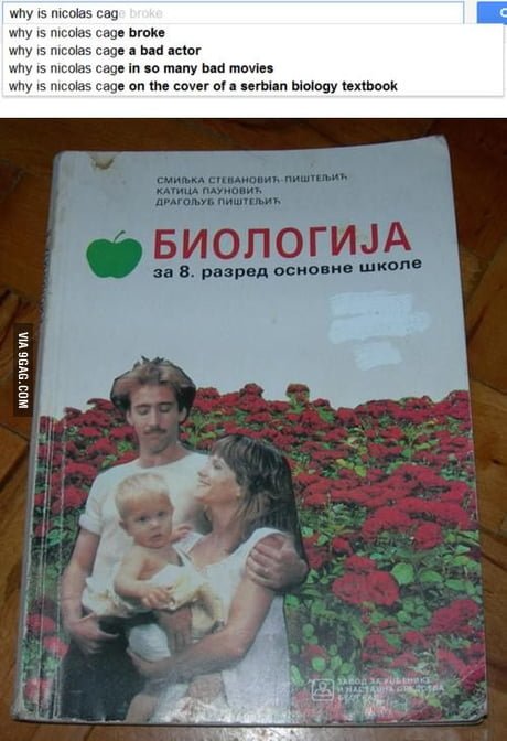Ще се отклоня от сериалната тема да ви покажа корицата на сръбски учебник по биология за осми клас...... с Ники Кейдж  hahaha hahaha hahaha hahaha hahaha hahaha hahaha