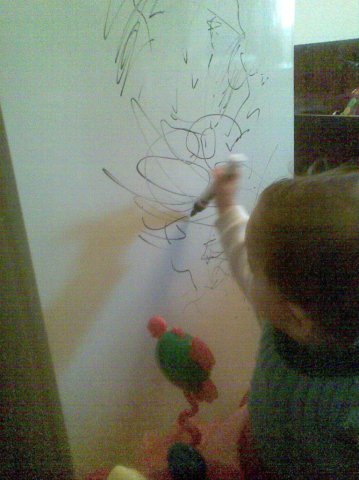 . Бобо още не си казва, ако не броим разни признаци, като например да спре да яде и да започне да се върти на столчето и да мрънка, или пък както си играе и да тръгне към вратата, защото гърнето му е в другата стая. Но пък тия признаци може и да ги пропуснеш или да значат друго понякога, така че трудно му се познава. Бобо освен дай, дай де, айде, мама (което май всъщност значи ам-ам) и та-те не казва. Лилинчо не каза отказала ли се е от опитите с гърнето.