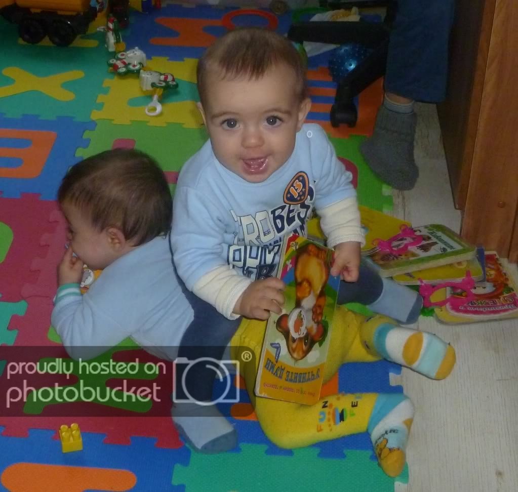 И Тошко досега 2 пъти си е цепвал устата, все по ръбовете като почна да се изправя. А вчера падна върху стойката на велоергометъра и се цепна точно отстрани на окото към слепоочието. На половин см по-навътре щеше да е в окото  ooooh! И аз си мислех, че ще става по-страшно занапред, като проходят и вземат да летят насам-натам  Rolling Eyes