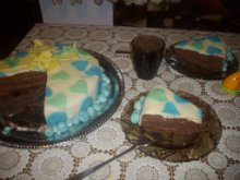 Баба си тръгна и ви черпя от моята първа торта-доста грозновата, но за това пък безкрайно вкусна  bowuu Измислихме и украсата за тортата на Бобо....