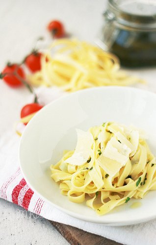 От мен пресни и много семпли талиатели със зехтин, чесън и босилек.