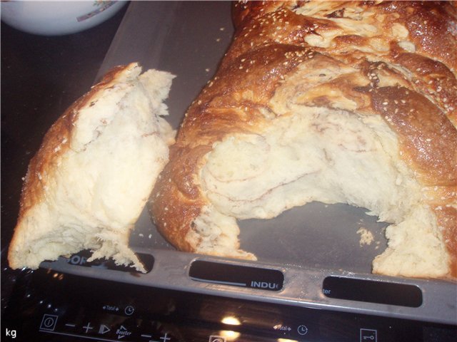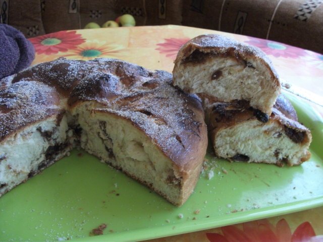 Момичета (...и момчета ),с гордост ще ви представя мойто КОЗУНАЧИЩЕ Grinning,което обаче благодарение на своевременната намеса на Бонго,голямо Тенкю Бонго,да досипя брашно,стана адски вкусно,та  дори и конци има бих казала...Направих даже едно по-малко рулце със стафиди,и две малки кифлички със сиренце за децата.А останалото мнооого тесто направих вътре само със захар и  какао,понеже се оказа,че благоверното не обичало стафиди Twisted Evil и всъщост това най-се доближава до оригиналния козунак.Обаче вече не правя нищо когато децата са вкъщи,искаха да помагат и познайте....Цялата къща имаше нужда от основен ремонт после Embarassed