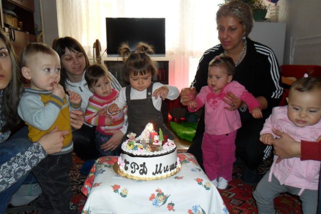 всички бебешоци се представиха чудесно , а малката принцеса издържа на вечерното тържество до 12,30. Аз бях грохнала и исках да спя, а Михаела да говори ли говори на мечока си и му разказва чак до 2,00 дано и днес след сутрешното парти с дечицата не е така , но не се оплаквам. Прекерхме си страхотно явно чакането си е заслужавало.