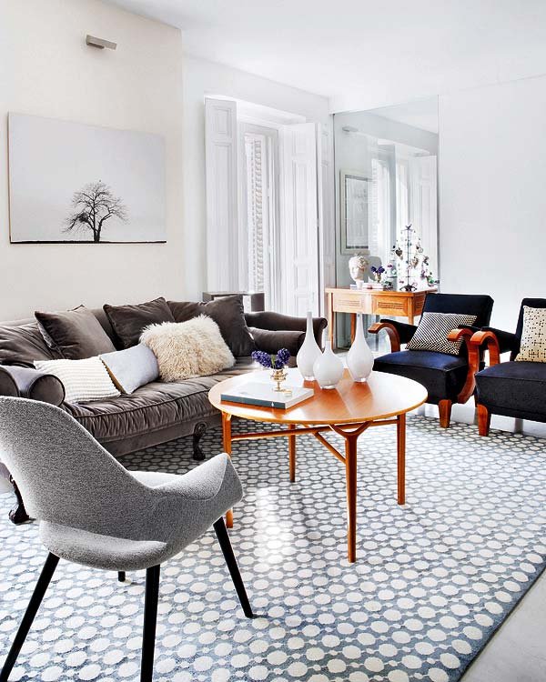 Тук вертикалните шарки бих сложила на комина. Едрите и дребните как да съчетая? Дребните на стената с леглото, едрите - на стената със скрина?