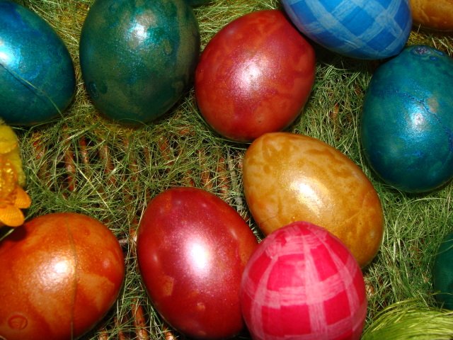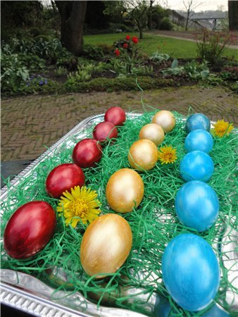 Аз с малко закъснение ,но се включвам в темата за Великден-ще ви покажа само снимка на моите бойдисани яйца ,т.н. в моя край :Перашки