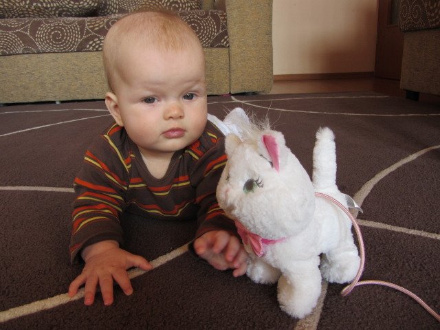 Зори изобщо няма желание да стъпва така. Задържам я понякога в мен, защото си мисля, че ще иска да подскача, но не.Въпрос за ваксини - педиатърът ни се завърна от пет месечен болничен и по телефона казала на мъжа ми, че трябвало да ни постави ваксина в двете крачета. Нали няма сега такава ваксина. Зори е боцкана три пъти с тази двойната, след това на 6 месеца - противохипатитната. Заместничката ни каза, че следващата е чак на годинка