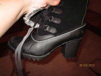 Отзад, напред - отговарят си! Маалко са уголемени и примерно спокойно могат да се носят с дебел чорап, което аз не правя, защото всичко нося с тънък, но и аз с моя 40 номер в този 40 номер, мога да обуя дебел чорап. Отвътре е някакъв финичък каракул(да го нарека), ама съвсем приличен. Тънък, но пък мъхест. Не е полар. Сега ще ги сваля от склада, че ги метнах на най-горния етаж и ще ги снимам. Peace