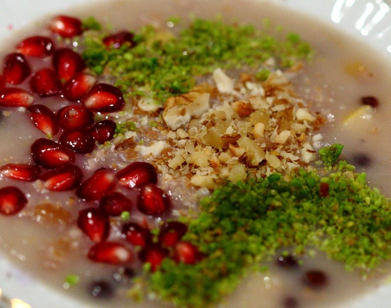 ето смесени 2ва вида фъстъци и фъндъци върху ашурето, купени със шушулките и надробени лично от мене