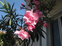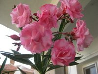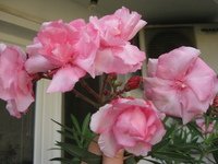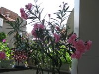 Grinning Доника, ще ти отговоря, така както му казваме по моя край - от чеснАче!  Grinning Т.е. както мушкатата, но чесначето се държи във водичка да пусне корени. Аз направо се бях поболяла от мерак да ги захвана!  Mr. Green Добре, че се намериха добри жени дето не ми устояха на молещия поглед (разбирай - жива просИя  Mr. Green), та вече имам 4 цвята - бял, розов, прасковен и лимоново жълт.  Тоя последният е още бебе - от миналата година. Една седмица ходех всеки ден да ухажвам една баба, докато я кандърдисам да ми отчесне. Прибягнах даже до подставени лица.  Joy Имах и един къдрав червен, но го уморих.  Sick Сега ми е неудобно да ида да си прося пак от него. Има и друг проблем - тераските не ми стигат за толкова зокуми  (лян  Peace, олеандър).  newsm45 Място нямааааам! И зимата няма място за прибирането иииииим. newsm45 Завземам цялото стълбище на кооперацията, и докато бяха малки не пречеха, ама сега са си цели дървета! Умът ми не го побира как ще се оправям с тях за в бъдеще newsm78, но това не ми пречи да искам още! И как да не искам, като погледнете за каква красота става въпрос: