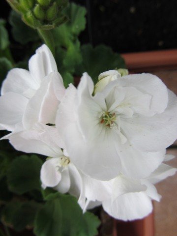 Мушкатото, което ми подари започна да отваря цветовете си. Много му се радвам, все край него се въртя.