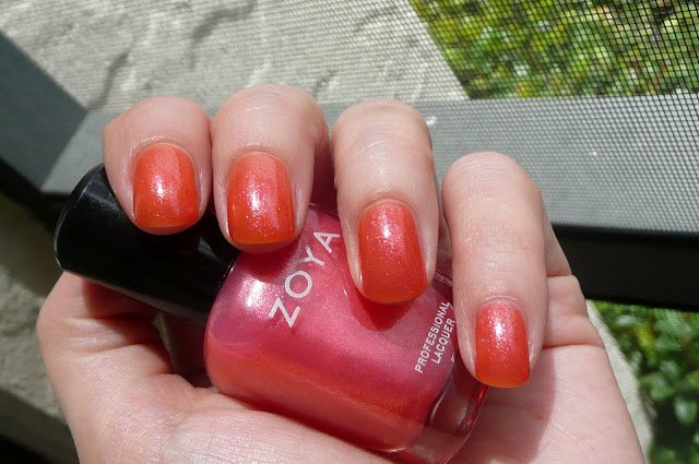 Първоначално мислех, че комбинацията Бел/Кейт (розово в/у розово) ще ми допадне повече, но на живо Бел/Коралайн (розово в/у оранжево) е много по-интересно съчетание - получава се много хубав дуохромен ефект, който не можах да уловя съвсем на снимките.
