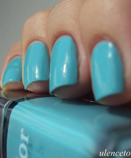 В колекцията си нямам точно такъв син лак. Доближава се до Aquadelic, който е по - зелен => не са идентични. Може би се доближава и  до For Audrey, който е с по - лошо нанасяне. Сен Тропе покрива на един пласт. Само на един нокът сложих два, защото не успях да изравня. Не съжалявам и за секунда, че го взех.  Wink
