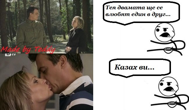 За мен лично точно в тази сцена най си личат чувствата им. По начина по който натърти на "Довиждане" (Иване, ВЪРВИ СИ, ама искам да те видя пак  newsm62). После след като той се обърна, тя затвори очи и после се облегна на вратата...обиича си го и още как....  Heart Eyes