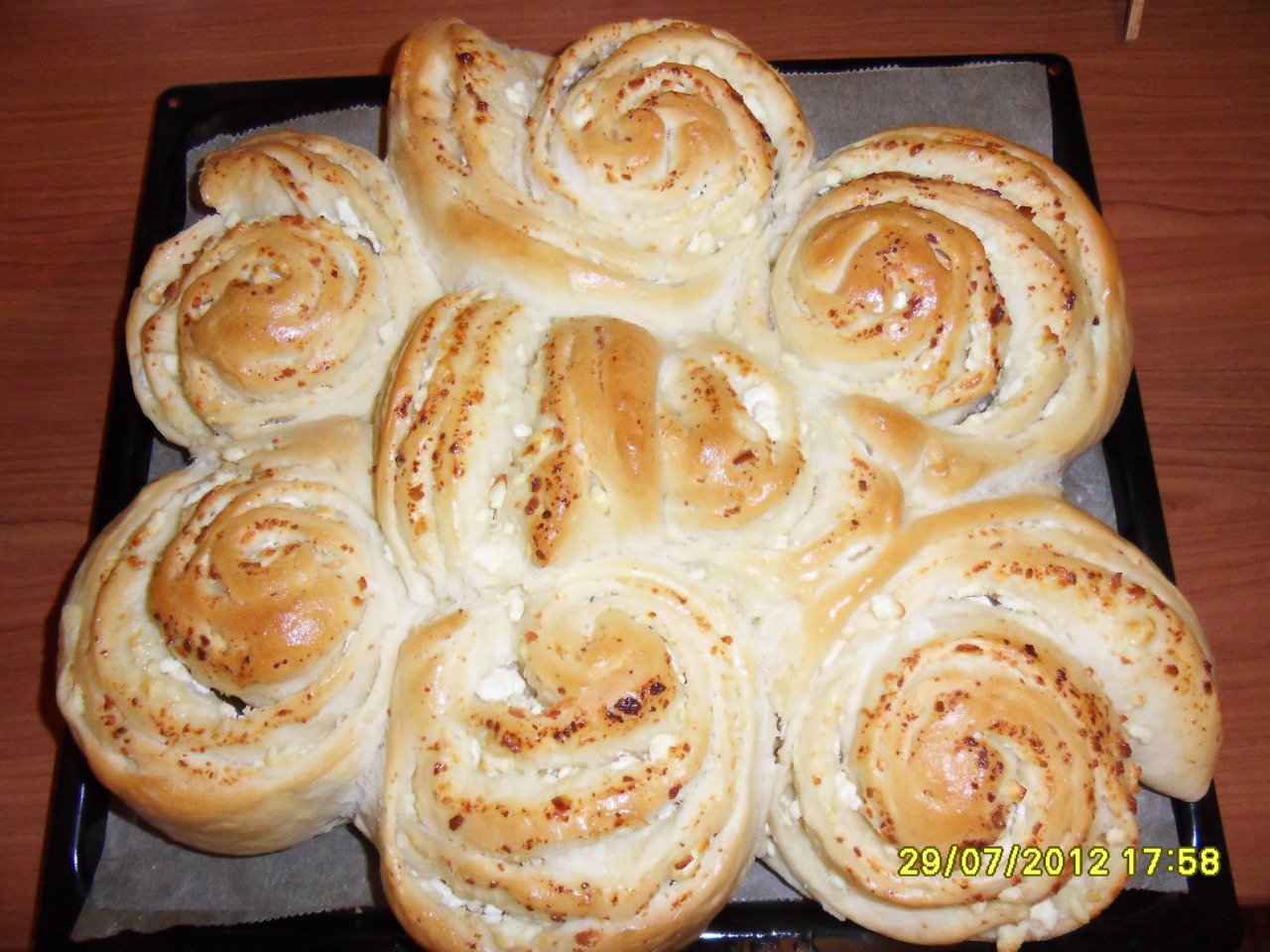 Вчера ме тресна музата да меся и ето творението ми питка със сирене, малко се разля ама е заради тавата: