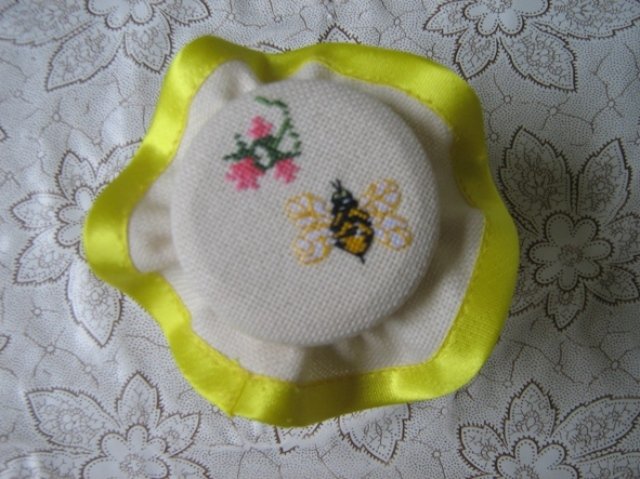 Аз завърших и последната шапчица- този път е за бурканче мед: