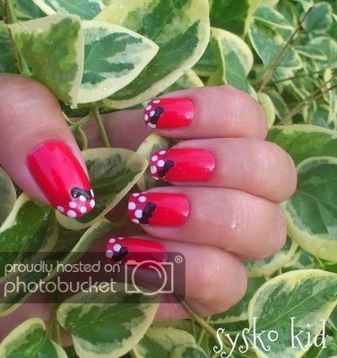 Неуспешен опит за Мини Маус маникюр. Иначе обожавам малиновото желе на КА - 693.