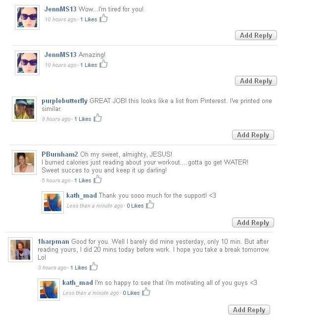 О, момичета, много искам да ви покажа какво се случи, след като вчера си тренировката към дневния отчет, в сайта caloriecount. Вижте колко мотивиращо действам на хората  Laughing Laughing: