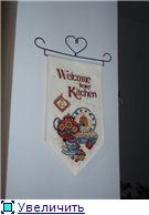 На банерчето не знам дали му личи от снимката, но червеният конец пусна... На живо се забелязва, но и малко като ефект стои, така че реших да не се опитвам да замазвам нещата, да не ги омажа повече ooooh!. В тази връзка - НИКОГА не перете гоблени с препарат за съдове! Аз нямах под ръка течен сапун и реших, че и верото ще ми свърши същата работа, ама се оплескаха нещата...