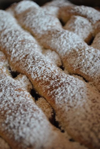 Обърках сладкото и вместо от сливи, отворих от арония, която малко се разтече и сладкишът ми остана на места тестян.