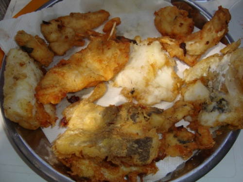 салата, пълнени чушки /преди да отделя от течността за сосче/,  бакаляро /осолена риба/