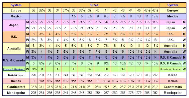 Видях таблицата, но това нищо не значи..Има ли някъде таблица със размер на стелките в см.?