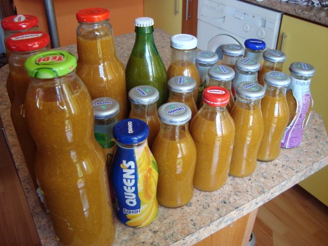 Нектарът от праскови - сварени с вода и захар и пасирани> Имам още толкова бутилки с натурален некрат, изцеден в сокоизтисквачката без добавка на захар.