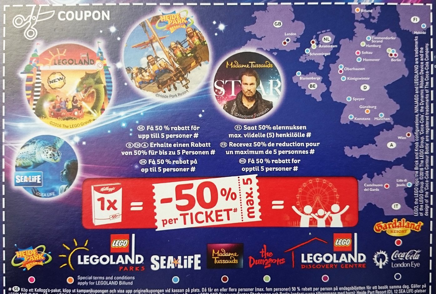 В каталога на Лего (Комсед) за юли-декември 2019 имаше талон за безплатен вход на деца до 11 години, валиден до 30.06.2020. Потърсете в Комсед ако имат още от тези каталози.