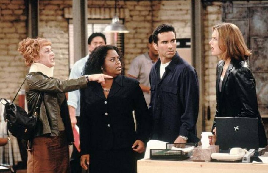 Шери с Кати Грифин, Нестор Карбонел и Брук Шийлдс в сцена от "Палавата Сюзън"