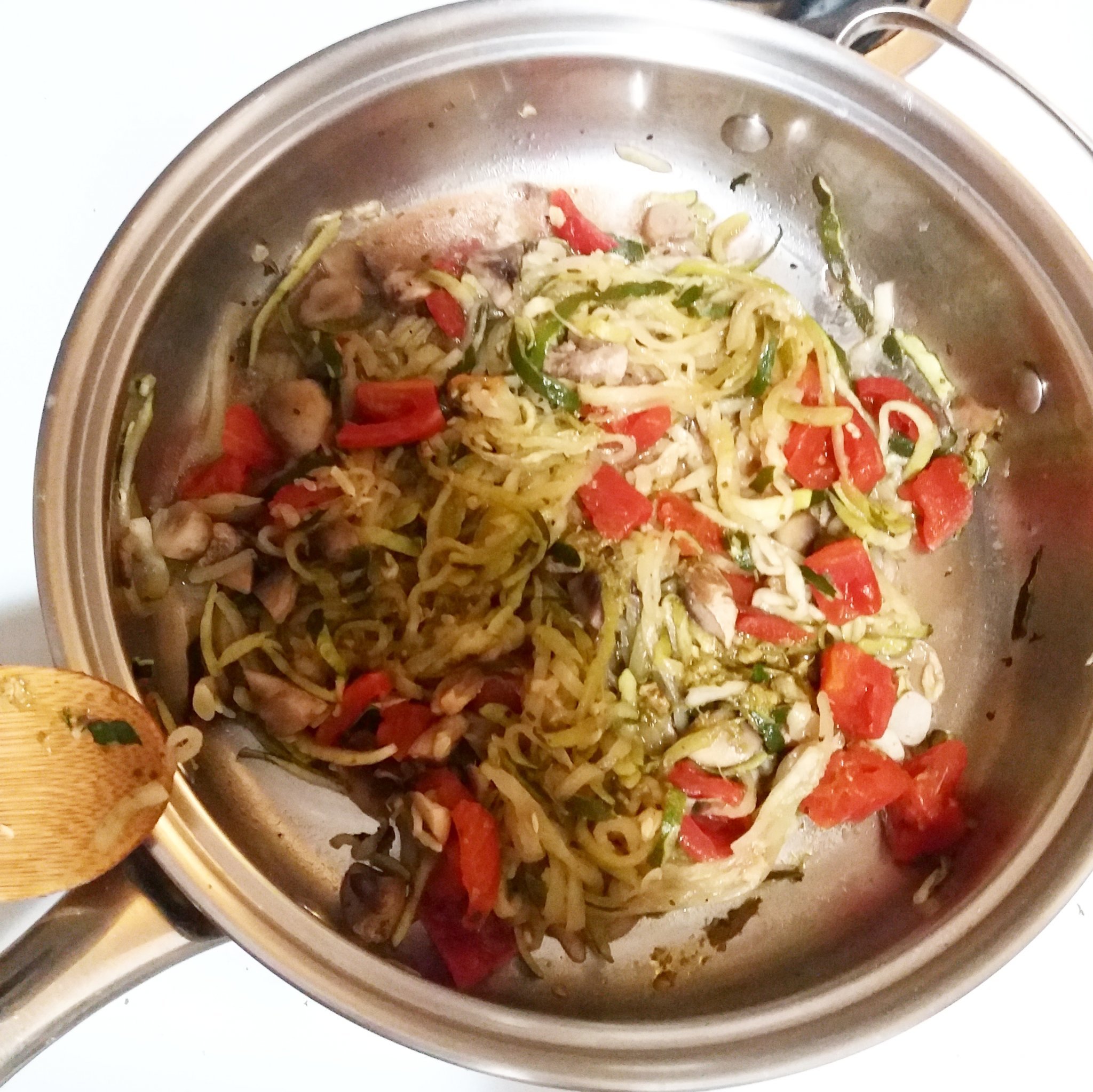 Снощи правих тиквички настъргани на лентички като спагети (така се продават) с гъби, песто, чесън и малко домати от консерва. Накрая добавих и малко настърган кашкавал, станаха невероятно сочни и вкусни и само за 10 минути Simple Smile