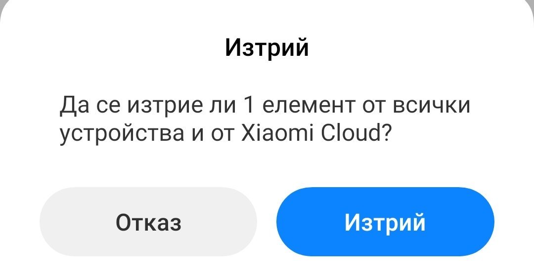 2.  Защо когато изтривам снимки ме пита дали искам да ги изтрия И от Xiaomi cloud ? Като отида в Настройки, Xiaomi cloud пише "В облака все още няма нищо" . Не съм включвала и синхронизирала облака, не искам снимките ми да са в облака, пък що все пита дали и оттам да ги изтрие ? Така е зададен текста на съобщението или е друго ?