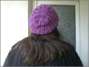 И завършената ми шапка в лила -