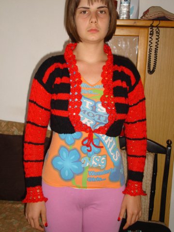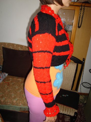 Big Pufana, ето аз вече плетката уточних благодарение на твоята помощ, а сега и моделът да уточня. Ще публикувам снимка И да кажа, аз мисля че трябва да се плете не вертикално, ами хоризонтално. Да започна от единият ръкав и до другия. Само немога да разбера - като гледам на снимката са надени парчетата, пък защо ли? Ето и снимката