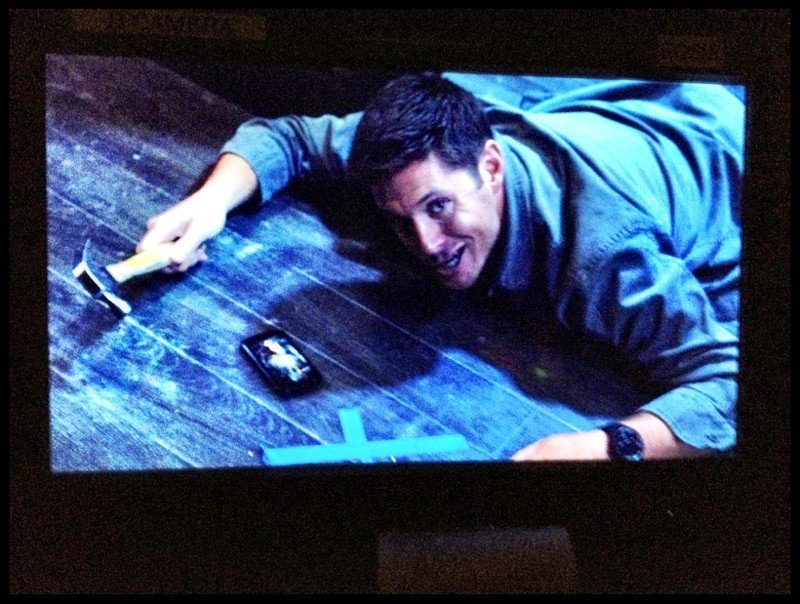 BTS #SPN # bloodbrother - Need a smashed cell phone? Just give Jensen a hammer!