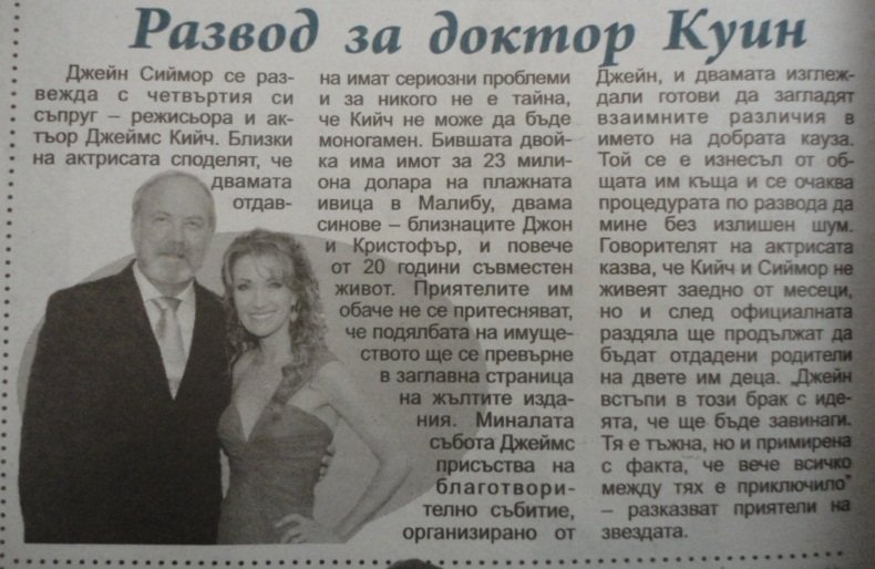 Една тъжна новина за Джейн Сиймур от днешния брой на в. "Тв Сага" Peace